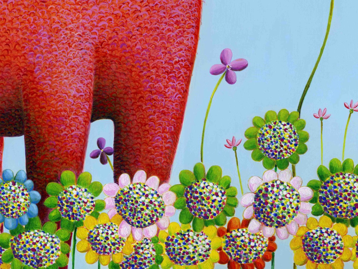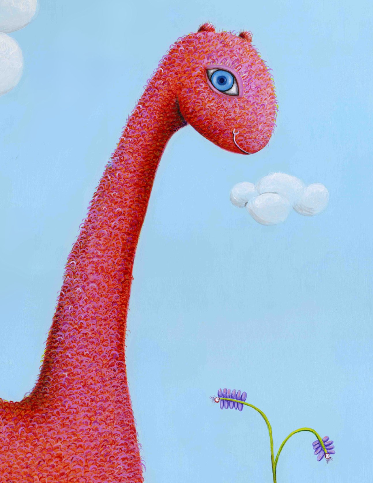 The image is of the 2006 painting titled 'Fuzzy Dinosaur'.