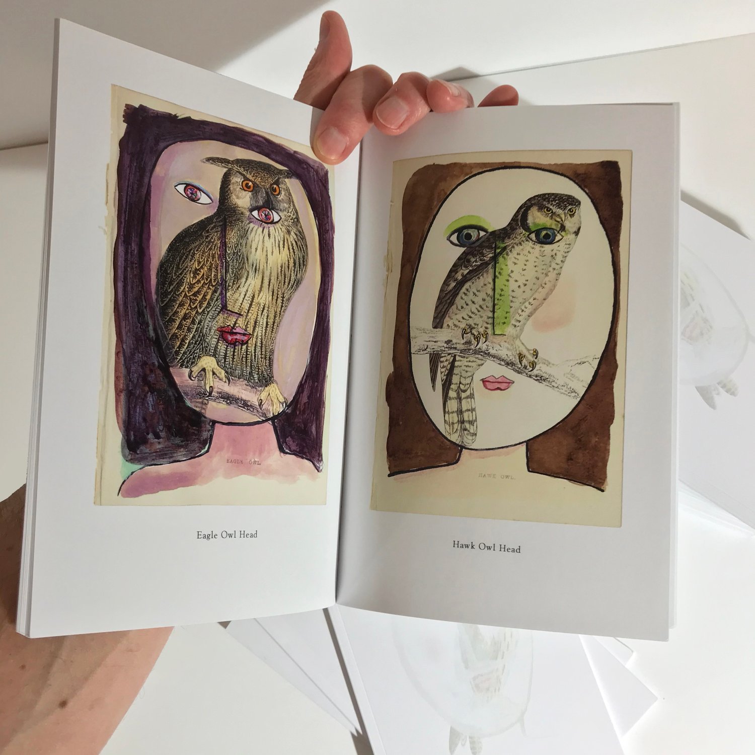 Within this book "The Enlightenment of Owls and Monkeys" are two series of appropriated art, mostly watercolor and ink drawings I created in year 2012. Both the Monkey Head and the Owl Head series are from 19th century images that were purchased previously separated from their bindings. The introduction is a 300 word essay describing the work and process by the artist.